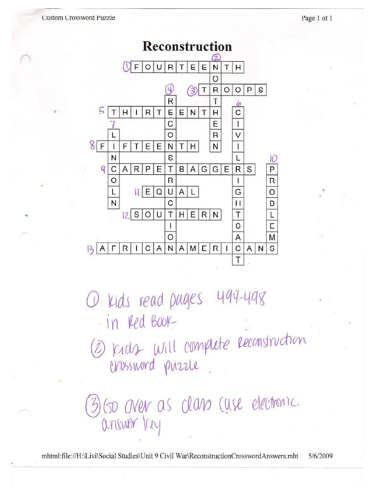 All the answers can be found in this issue. All About Reconstruction Crossword Puzzle - Read online for free. Title of a book about Southern Reconstruction.